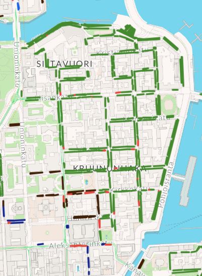 Kaikki eri hintaiset kadunvarsien pysäköintipaikat palvelukartalla