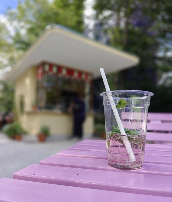 Yksi kioskin erikoisuuksia on raparperimehu.