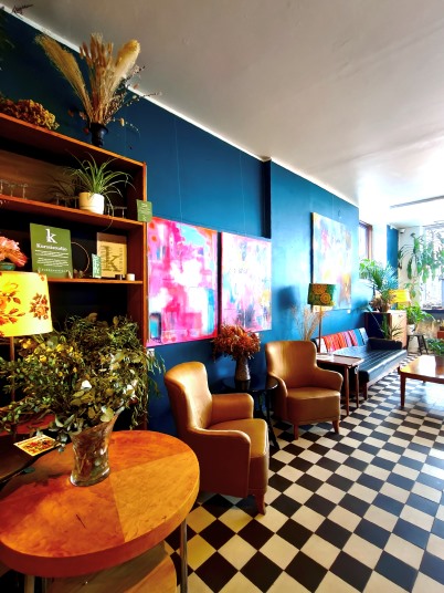 Viihtyisä ja värikäs kahvilatila täyttyy iltapäivällä rauhallista kahvi- tai lukuhetkeä hakevista asiakkaista. Jock kertoo puhuvansa mielellään suomea, vaikkei sitä vielä kunnolla osaakaan. Yhteisöllisyys on kahvilan pitäjälle tärkeää ja aidot asiakaskohtaamiset näyttävät olevan keskiössä.