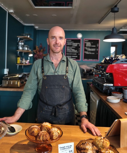Jock Gammon hoitaa kahvilaa ja leipoo artesaanipullat ja erikoiskahvit.