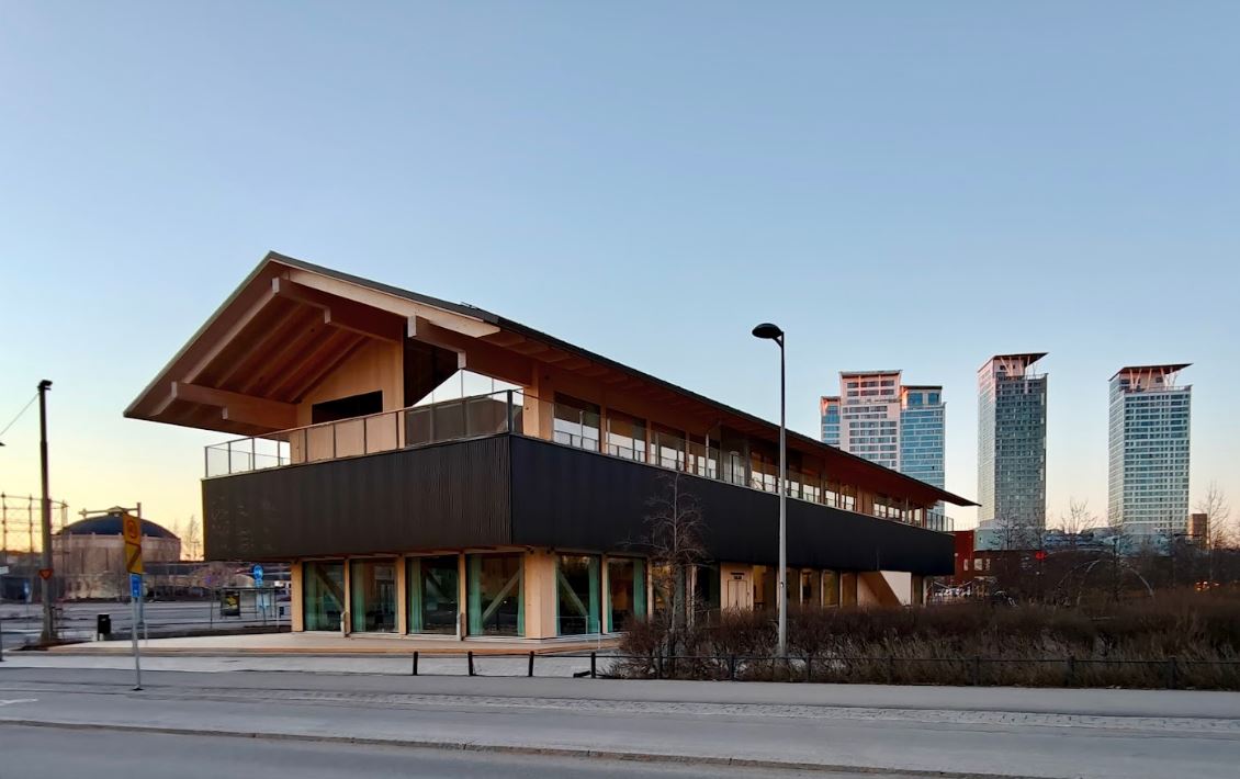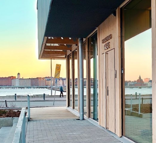 Uusi yhteiskerhotila toimii yhteoisötilana ja kahvilana Kalasataman rannassa.