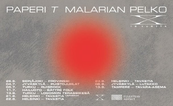 MALARIAN PELKO TÄYTTÄÄ 10 VUOTTA – PAPERI T AINUTLAATUISELLE KIERTUEELLE