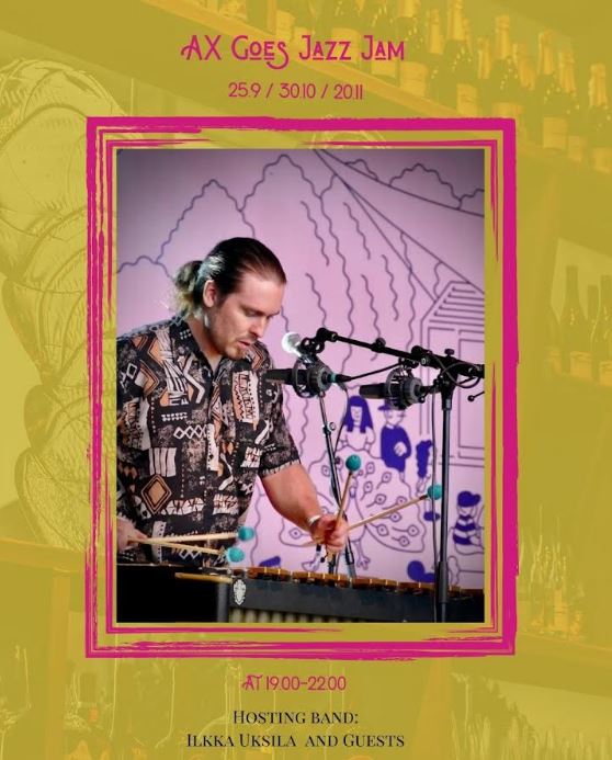 AX Ravintolan Jazz Jam illat ovat jälleen täällä tuttuun tapaan kerran kuussa, tällä kertaa torstaisin! Illan host bändissä tänään Ilkka Uksila, Joonas Tuuri ja Kasper Halttunen. Tule siis nauttimaan tunnelmallisesta illasta vapaan jamittelun äärelle ja hyppää itsekin mukaan soittamaan jos siltä tuntuu!