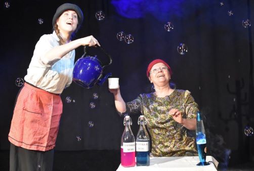 Kummallinen kahvila on sirkusta, taikuutta, tiedetemppuja ja teatteria yhdistävä sanaton esitys koko perheelle. Luvassa on mm. maagisesti väriä vaihtavia juomia, kuplia, musiikkia, akrobatiaa ja paljon huumoria! Esityksessä on katsottavaa niin aikuisille kuin lapsillekin ja se on täysin sanaton. Sanattomuutensa vuoksi esitys sopii erinomaisesti myös eri kielisille yleisöille ja kuuroille. Kesto n. 35 min.