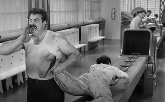 Tämä kiistatta maailman merkittävimpiin elokuviin ja parhaisiin komedioihin lukeutuva leffa esittelee työelämän ja yhteiskunnan vaatimuksia sellaisina kuin Chaplin ne näki vuonna 1936. Ikonisen kulkurihahmon, joka yrittää kaikin voimin pysyä mukana ja tehdä osansa yhteiskunnan rattaissa, kautta Chaplin kertoi, mitä koneellistuminen ja yletön tehostaminen tekevät laman riivaamassa maassa.