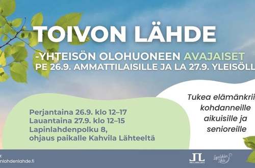 https://lapinlahdenlahde.fi/tapahtumat/toivon-lahde-yhteison-olohuoneen-avajaiset/