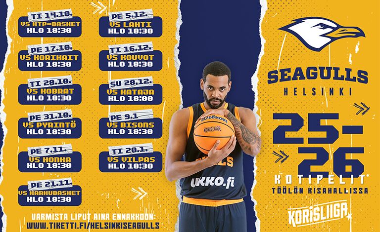 Korisliigan mestaruutta puolustava Helsinki Seagulls kohtaa kotonaan  Kataja Basketin.