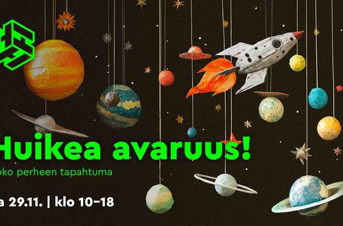 Lauantaina 29.11. klo 10–18 järjestämme koko perheen Huikea avaruus! -tapahtuman, joka sopii erityisen hyvin avaruusfaneille ja tulevaisuuden astronauteille. Luvassa on mielenkiintoisia avaruusaiheisia työpajoja ja esityksiä.