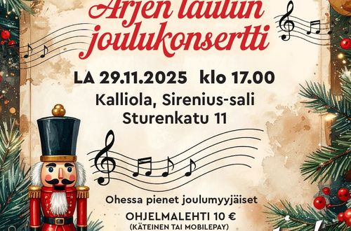 Arjen laulun joulukonsertissa kuullaan kevyttä musiikkia, työväenlauluja ja joululauluja.