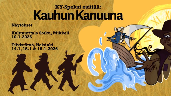 Aalto-yliopiston kauppakorkeakoulun teatterikerho KY-Speksi saapuu ilahduttamaan tammikuun koleita iltoja! Helsingin näytökset 14.1., 15.1. ja 16.1. Tiivistämöllä.