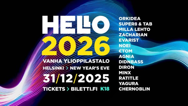 The biggest New Year's Eve party in Helsinki. HELLO, is created by Orkidea, Super8 & Tab, Proteus, our new core members Kid93 and Evarist from Insomnia and “The Guy behind The Circus”!