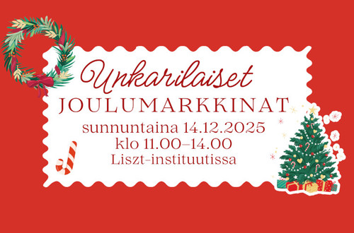 Unkarilaiset joulumyyjäiset pidetään sunnuntaina 14.12.2025 klo 11.00–14.00 Liszt-instituutissa, osoitteessa Kaisaniemenkatu 10.