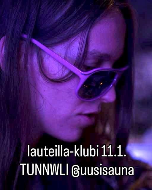 Uuden Saunan Lauteilla-klubi sunnuntaina 11.1.2026 TUNNWLi. Levyjä pyörittää dj maija.