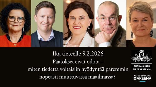 Suomalaisen Tiedeakatemian Ilta tieteelle -tilaisuudessa 9. helmikuuta tarkastellaan tieteen roolia päätöksenteossa. Miten tutkittua tietoa voitaisiin hyödyntää nykyistä paremmin erityisesti akuuteissa ja nopeasti kehittyvissä tilanteissa? Miten yliopistot voivat tukea nopean päätöksenteon tietotarpeita?