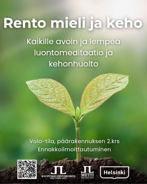 Briefly in English: Rento mieli ja keho is a free and simple meditation and body care class that’s open for everyone. The instruction is in Finnish, but feel free to join if you understand Finnish. There is a pre-registration separately for all the classes. You can find the events on our website: https://lapinlahdenlahde.fi/tapahtumat/