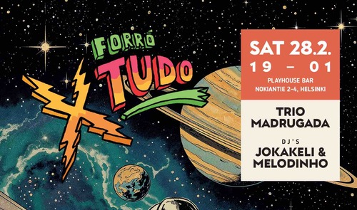 FORRÓ X-TUDO on omistettu tanssille, ystäville ja elämän kauneudelle. Illan livekeikasta vastaa talon bändi TRIO MADRUGADA. DJ:t JOKAKELI ja MELODINHO huolehtivat tanssilattiasta parhailla forró-klassikoilla ja uusilla suosikeilla. Juhlat alkaa tuttuun tyylin forró-tanssitunnilla. Opettajina häikäisevät Johanna Alatalo ja Suvi Lukka (BAIÂO HELSINKI). X-TUDO on rakkautta kaikissa muodoissaan ilman ennakkoluuloja tai syrjintää. Tervetuloa – nämä juhlat on kaikille!