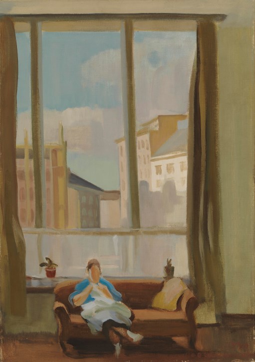 Eero Nelimarkka: Ateljeesta (1940). Nelimarkka sai vuonna 1933 ateljeen uudesta Lallukan taiteilijakodista Etu-Töölöstä ja 1937 hän sai Lallukasta isomman perheasunnon, jolloin myös Saima ja lapset muuttivat pysyvästi Helsinkiin ja perhe yhdistyi. Kuva: Kansallisgalleria / Hannu Pakarinen