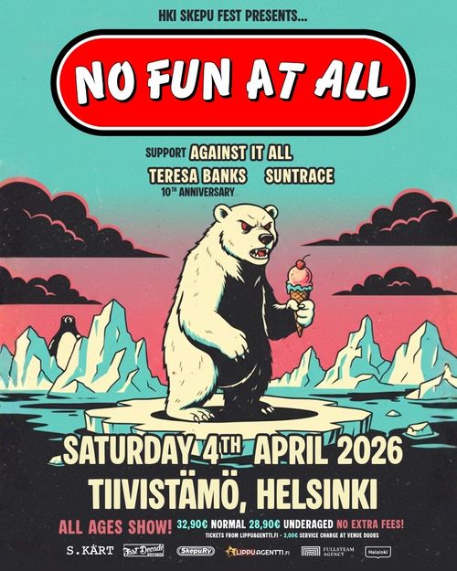 Huhtikuun keikalla nähdään myös skatepunkin oma Suomen pioneeri Against It All. 1990-luvulla Kiuruvedellä perustettu Against It All on palannut keikkalavoille ja julkaisi 28 vuoden tauon jälkeen uutta musiikkia. Viimeksi bändi villitsi yleisöä HKI Skepu Festeillä 2024.