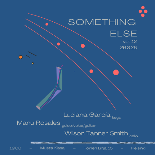 SOMETHING ELSE is a concert series for improvised music focused on new meetings of musicians from across Helsinki's free improv, experimental, jazz, electronic, and global music scenes, hosted on the 4th Thursday of each month at Kallio's Musta Kissa bar. New small-ensemble groupings--often first-time meetings--are highlighted each time, with an emphasis on surprise, difference, curiosity, energy, and connection. Curated/hosted by Wilson Tanner Smith.