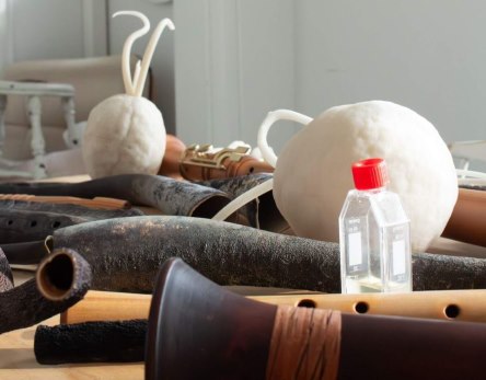 Flagellate is a musical performance combining micro algae, horns made from kelp seaweed and traditional Finnish and Karelian shepherd's instruments.