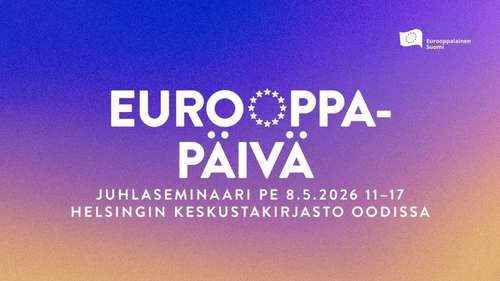 Eurooppa-päivää vietetään 8.5.2026 juhlaseminaarissa Helsingin Oodissa. Tervetuloa mukaan juhlimaan yhtenäistä Eurooppaa!