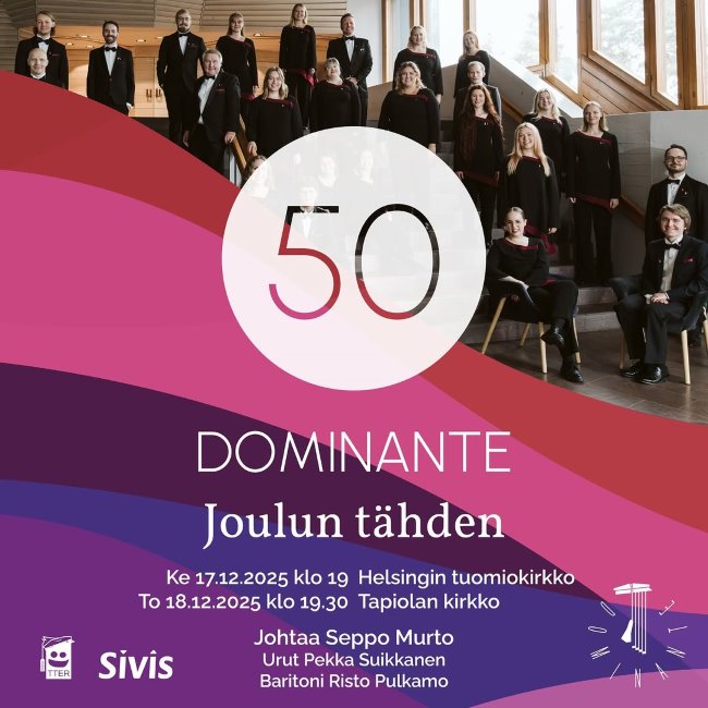 Liput 18/28/40€ Dominanten verkkokaupasta, kuorolaisilta tai ovelta.
