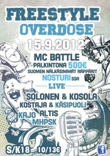 Freestyle Overdose Mc Battle: Solonen & Kosola, Kostaja & Käsipuoli, Kajo, Altis, Mhpsk, la 15.9.