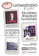 Luomustudio-Klubi - Akustinen Iltapäivä Tavastialla: Lassi Valtonen & Hot Mama Salonen, Nimetön Ja Frankie Say Relax, la 13.10.