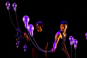 Helium-ilmapallojen asuttamassa erikoisessa ja mielikuvituksellisessa maailmassa kaksi jonglööriä käy dialogia niin toistensa kuin esineidensä kanssa. Tilanteet muuttuvat absurdeiksi, kun esiintyjät alkavatkin menettää hallitsijan ja manipuloijan roolejaan joutuen itse vuorostaan ohjailtaviksi.