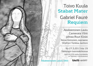 Akateeminen Laulu Ja Camerata Vihti, Johtaa Ruut Kiiski. Anna Immonen Sopraano, Waltteri Torikka Baritoni - Toivo Kuula: Stabat Mater, Gabriel Fauré: Requiem, ke 27.3.