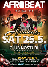 Afrobeat on Suomen jännittävin afrikkalaisen ja afrikkalaisperäisen musiikin tapahtuma. Afro, reggae, dancehall, soca... You name it, we play it. Tule mukaan tanssimaan ja nauttimaan Festival Tinz -tunnelmasta lauantaina 25.5. Nosturissa! Illan tähtiesiintyjänä nähdään DJ JamJam, kenties maailman tunnetuin Afrobeat-dj. Briteissä JamJam tunnetaan uskomattomista bileistä sekä radio-ohjelmista BBC 1Xtra- ja Westside Radio -kanavilla. Lavalla nähdään myös muun muassa Dandimite Double -ryhmän vauhdikas dancehall-tanssiesitys.