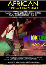 "Hands" is a collaborative piece that has been jointly developed by dancers and choreographers from Madagascar, Tanzania and Kenya. Each of there dancers are uniquely inclined to their artistic specialties which are varied from African contemporary dance, Modern dance and Street dance