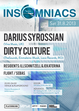 Insomniacs With Darius Syrossian (Uk) & Dirty Culture (Ro), la 31.8.