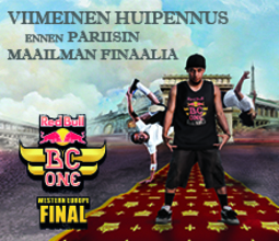Vuosi vuodelta suosiotaan ja tasoaan kasvattanut maailmanlaajuinen kilpailusarja Red Bull BC One saapuu nyt ryminällä Suomeen, kun Red Bull BC One Länsi-Euroopan finaali kilpaillaan Helsingissä lauantaina 11.10.2014. Red Bull BC One Western European Final tuo Helsingin Vanhalle Ylioppilastalolle 16 Länsi-Euroopan kovinta, taitavinta ja kylmäpäisintä B-boyta, jotka taistelevat himotusta paikasta marraskuun Pariisissa pidettävään maailmanfinaaliin.