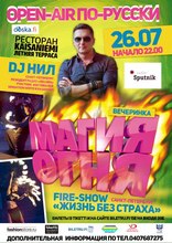 Illan erikoisvieraana on Pietari-kaupungin "Rekord" radiokanavan edustaja, maailmankuulu DJ, Sensation White ja Kazantip -festivaalien monikertainen osanottaja, karismaattinen DJ NIL! Teitä yllättää mahtava tulishow Pietarista "Elämä ilman pelkoa", lämmin kesäinen yö, unohtumatonta musiikkia ja tanssit aamunkoiton asti!