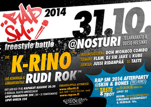 Vuoden 2014 RAP SM Freestyle Battle -kilpailut järjestetään perjantaina 31.10.2014 Helsingin Nosturissa.