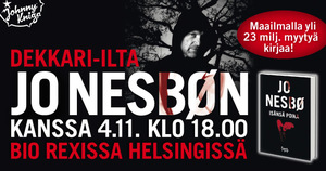 Ainutlaatuinen tilaisuus tavata kansainvälinen dekkarikunigas Jo Nesbø. Illan aikana Suomen tennisässä ja Nesbø-fani Jarkko Nieminen haastattelee kirjailijaa. Tilaisuudessa kuullaan myös laulaja-lauluntekijä Aino Vennaa. Uutuuskirja Isänsä poika sekä Jo Nesbøn muut kirjat tarjoushintaan myynnissä tilaisuudessa. Mahdollisuus saada myös signeeraus.