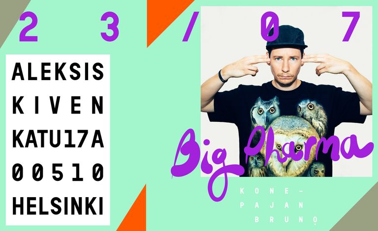 Hehkuva neonvalo, sähköinen tykitys ja tamppauksesta huutava betonilattia aka Big Pharma on tuottaja Jussi Ylikosken tinkimätön visio tanssimusiikista. Disco Ensemblenkin kitaroista ja biiseistä vastannut tekijä luo Konepajan Brunoon Heinäkuussa yhden miehen festivaalit, minkä lopputulos kantaa nimensä mukaista tulosta: Lisää Big Pharmaa!