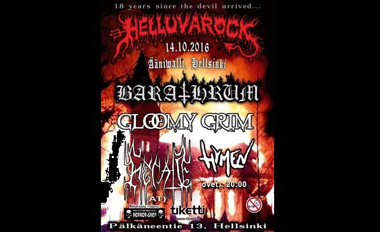 HelluvaRock 2016 -tapahtuma tuo kotimaiset black metalin legenda Barathrumin sekä juuri uuden albuminsa julkaisseen horror metalin kulttiyhtye Gloomy Grimin Helsingin Ääniwalliin. Vahvistuksena toimivat itävaltalainen breakcorea esittävä Hecate sekä punk-vaikutteista metallia soittava kotimainen Hymen. Alkuperäinen iisalmelaisessa nuorisotalossa 1998 järjestetty HelluvaRock aiheutti pahennusta mediassa black metalin luonteen vuoksi.
