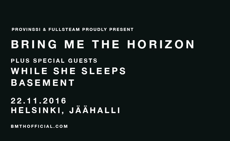 Tiistaina 22. marraskuuta Helsingin Jäähallissa konsertoiva brittiläinen Bring Me The Horizon on julkistanut Euroopan-kiertueensa lämmittelijät. Tulevalla Suomen-keikalla illan avaavat metalcore-genren kuumimpiin nouseviin nimiin lukeutuva While She Sleeps sekä pitkän hiljaiselon jälkeen uutta paluuta tekevä post-hardcore-yhtye Basement.