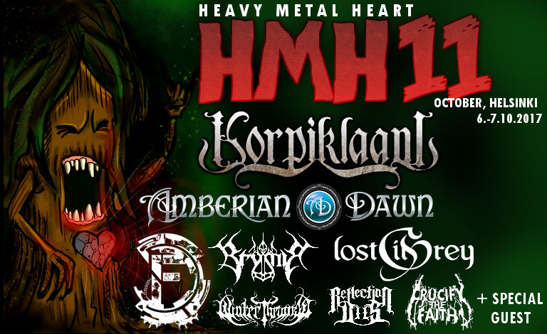 Heavy Metal Heart 11 tarjoilee yleisölle mukavan poikkileikkauksen metallimusiikkia. Mukana on myös perinteisesti pitkänlinjan metallikonkareiden lisäksi joukko kuumia nousevia nimiä. Tänäkin vuonna Heavy Metal Heart pyörittää päitä niin folkmetallin kuin metalcorenkin tahtiin. HMH11 tapahtuman pääesiintyjiksi on kiinnitetty folkmetalyhtye KORPIKLAANI, sinfonisen metallin helmi AMBERIAN DAWN sekä shock-industrialmetallin ylpeys FEAR OF DOMINATION. Mukana karkeloissa ovat myös BRYMIR, LOST IN GREY, REFLECTION DIES, CRUCIFY THE FAITH sekä WINTERTHRONED. Tapahtuman yhdeksäs bändi valitaan HMH11- bändikilpailun kautta, joka ratkeaa syyskuussa.