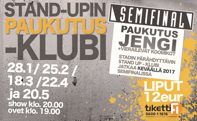 Illan rungon muodostavat Paukutusjengin koomikot Teemu Vesterinen, Joni Koivuniemi, Anders Helenius, Jukka Lindström ja Aatu Raitala. Heidän lisäkseen Semifinalin lavalla nähdään vierailijoina tunnettuja stand up-nimiä, alan kuumimpia uusia tekijöitä sekä lavakomiikan omituisimpia hahmoja.