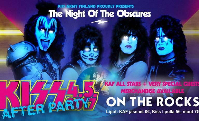 KISS Army Finlandin järjestämät viralliset KISS-keikan jatkobileet On the Rockissa. Esiintymässä KAF Allstars + nippu vierailevia artisteja jotka julkistetaan myöhemmin. Paikalla myös myynnissä KISS-aiheista merchandisea ja muuta aiheseen liittyvää.