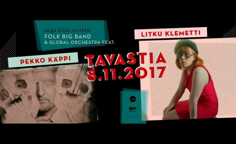 Marraskuinen Tavastian lava pullistelee liitoksistaan, kun sille nousevat voimansa yhdistävät Sibelius-Akatemian Folk Big Band ja Global Orchestra solisteinaan muun muassa kansainvälistä uraa luova jouhikkovelho Pekko Käppi. Taiga-klubi tekee paluun Helsinkiin ja esittelee suurorkesterin, jonka sointi risteyttää muinaista ja uusinta, pientä ja suurta, läheltä ja kaukaa.