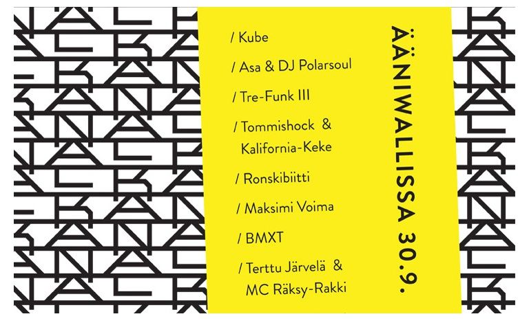 ESIINTYMÄSSÄ: Asa & Polarsoul Tre-Funk III Tommishock & Kalifornia-Keke Ronskibiitti Maksimi Voima BMXT Terttu Järvelä & MC Räksy-Rakki sekä YLLÄTYSESIINTYJÄ, joka paljastetaan 13.9.!