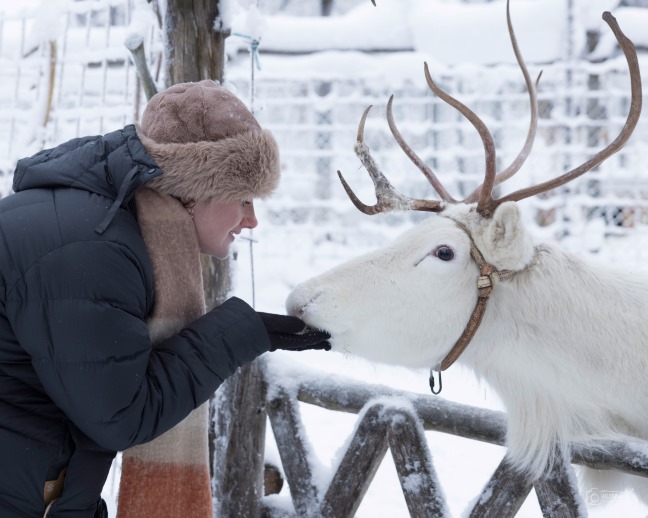 Levin Huskypuistossa poroihin pääsee tutustumaan lähietäisyydeltä ja silittämäänkin. Kuva: Jarno Koivula