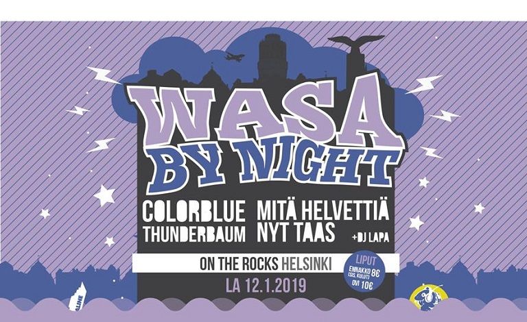 Wasa By Night - Colorblue, Thunderbaum, Mitä Helvettiä Nyt Taas, la 12.1.