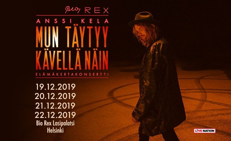 Anssi Kelan ennenkokemattomat Mun täytyy kävellä näin -elämäkertakonsertit nähdään Bio Rex Lasipalatsissa joulukuussa. Kolmen esityksen konserttisarjaa täydentää torstaille 19.12. tullut lisäkonsertti!