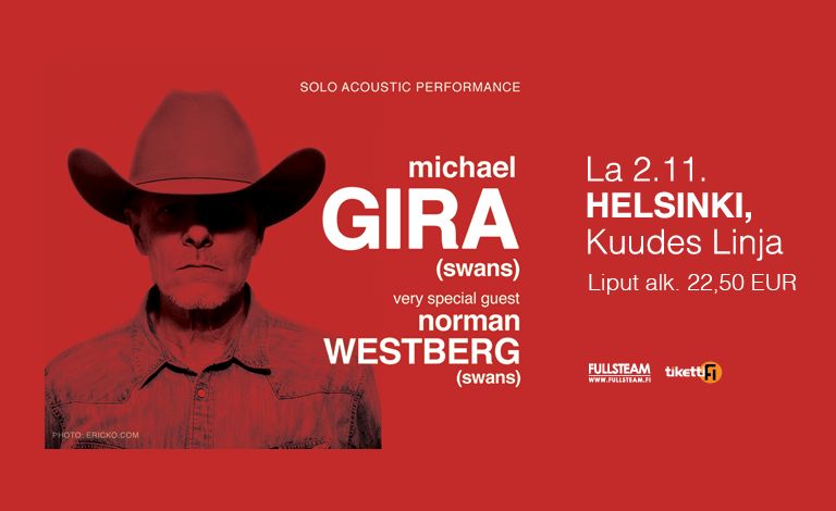Palvotun yhdysvaltalaisyhtye Swansin keulahahmo Michael Gira saapuu Suomeen marraskuussa. Myös sooloartistina, Angels Of Lightin johtohahmona sekä kirjailijana tunnettu Gira esiintyy Helsingin Kuudennella Linjalla lauantaina 2. marraskuuta osana akustista soolokiertuettaan.