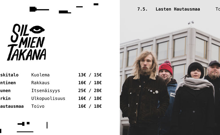 On the Rocksissa järjestettävä Silmien Takana -klubi jatkuu tammikuussa. Vuoden 2020 kevätkauden pääesiintyjinä nähdään Joose Keskitalo, Tommi Läntinen, Edu Kettunen, Jesse Markin ja Lasten Hautausmaa. Liput tulevat ennakkomyyntiin Tikettiin keskiviikkona 11. joulukuuta.